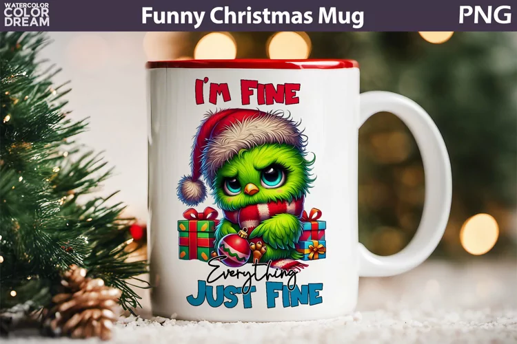 Grumpy Christmas Mug | Sarcastic Coffee Mug | I'm Fine Everything Just Fine
