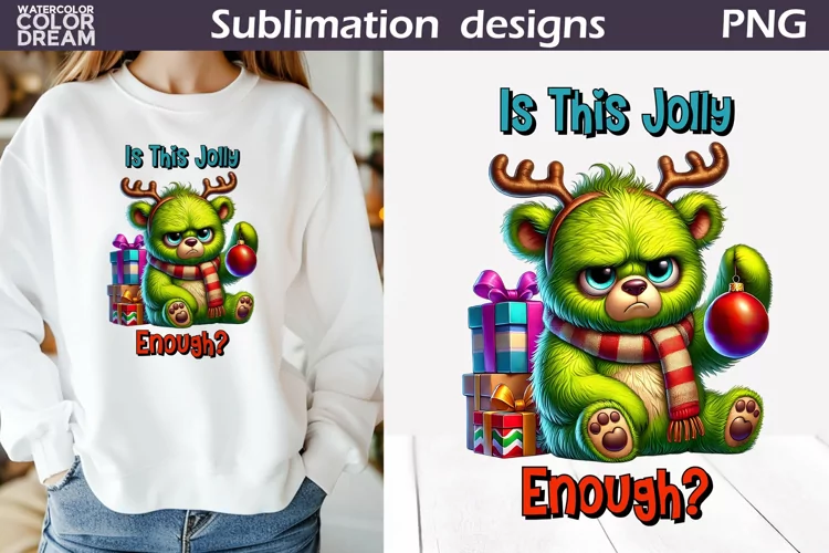 Funny Grumpy Bear T Shirt | Sarcastic Christmas Sublimation | Is This Jolly Enough?