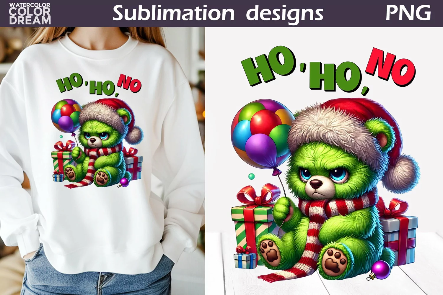 Funny Grumpy Bear T Shirt | Sarcastic Christmas Sublimation | No Ho No!