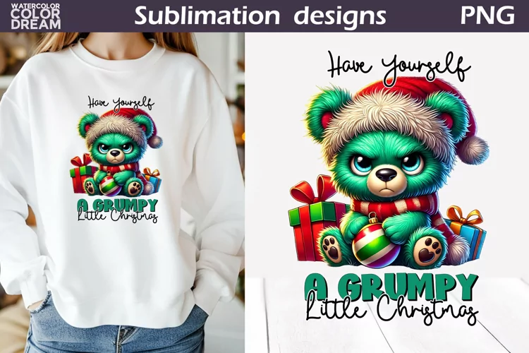 Funny Grumpy Bear T Shirt | Sarcastic Christmas Sublimation | Have Yourself A Grumpy Little Christmas