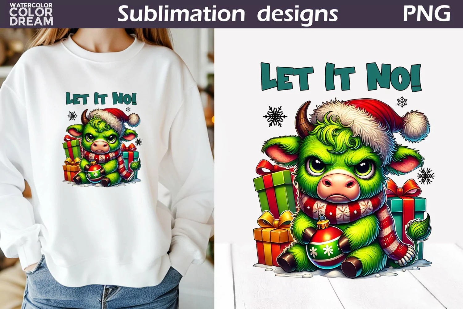 Funny Grumpy Cow T Shirt | Sarcastic Christmas Sublimation | Let It No!