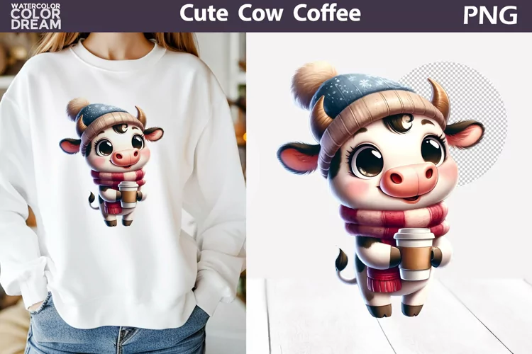 Cute Cow Coffee Clipart | Animal Coffee Sublimation