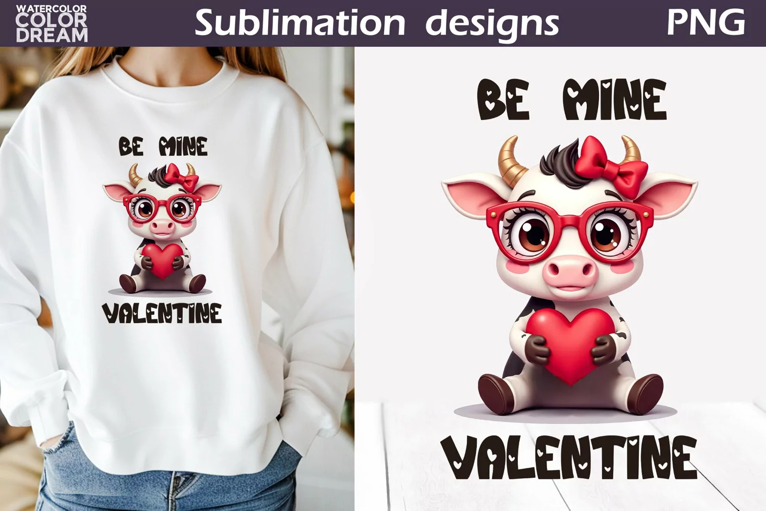 Cute Cow Valentine Sublimation | Be My Valentine example image 1