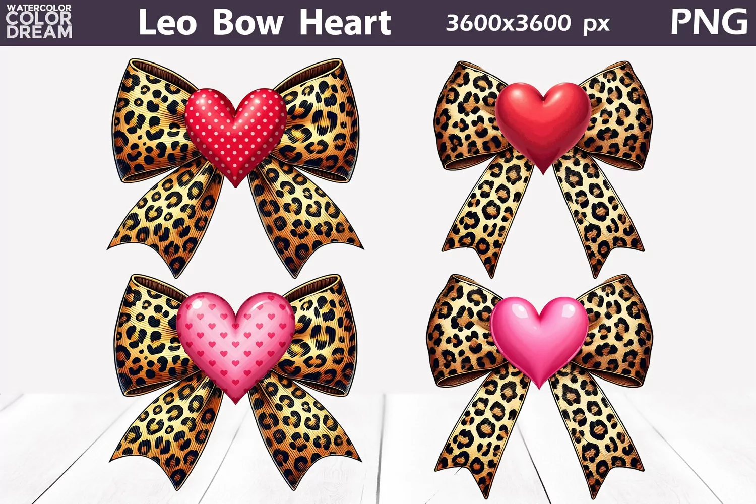 Leo Bow Heart Clipart | Valentine Bow Sublimation