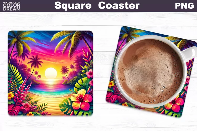 Coaster Square Coaster Summer Square Coaster Beach Square Coaster Beach Coaster Sea Square Coaster Ocean Square Coaster Beach Sunset Square Coaster Summer Beach Square Coaster Tropical Beach Square Coaster