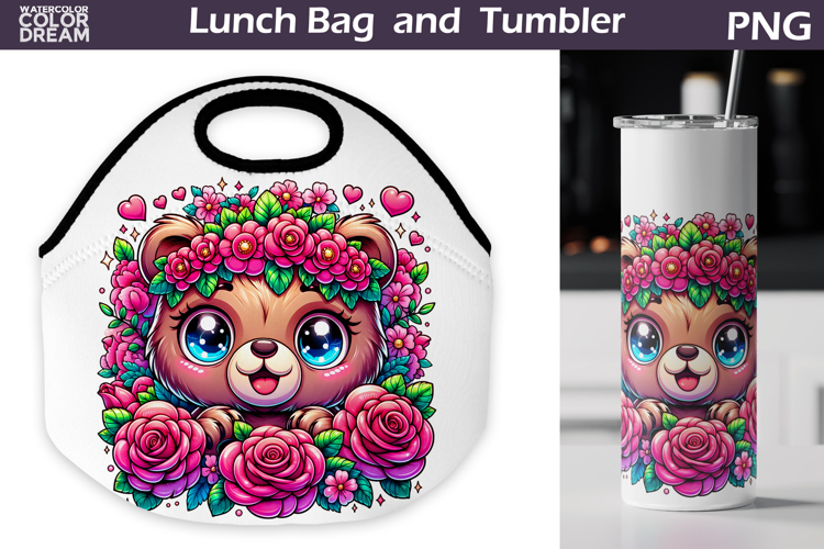 Lunch Bag Lunch Bag Sublimation Lunch Bag And Tumbler Bear Flowers Tumbler Tote Lunch Bag And Tumbler Cute Bear Lunch Bag Cute Animal Lunch Bag Bear Flowers Lunch Bag Bear Roses Lunch Bag Bear Roses Tumbler