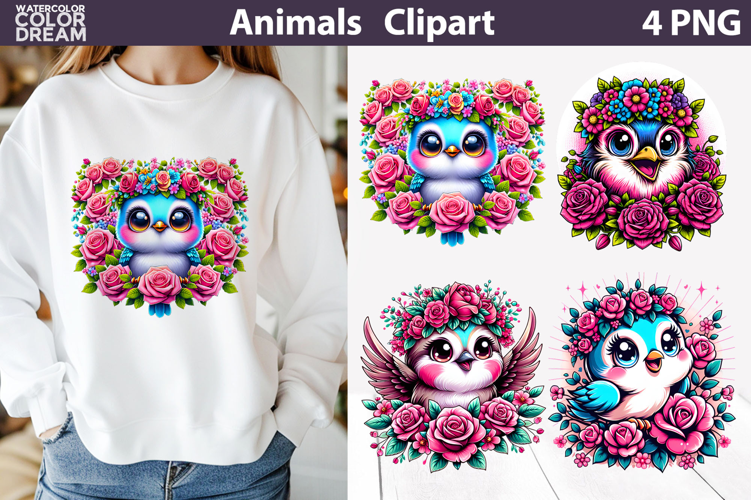 Bird Bird Clipart Cute Bird Baby Bird Clipart Animal Flowers Floral Bird Clipart Bird Roses Sublimation Flowers Bird Bird Roses Clipart Bird Floral Sublimation