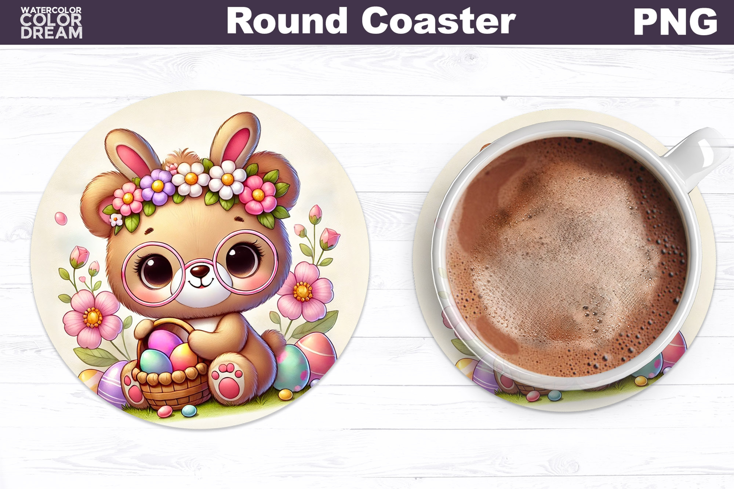 Easter Coaster Round Coaster Easter Animal Coaster Sublimation Easter Bear Easter Round Coaster Cute Bear Coaster Easter Animal Round Coaster Easer Bear Round Coaster