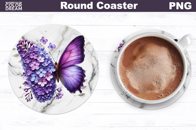 Similar Design Products to Violet Butterfly Floral Round Coaster | Butterfly Coaster