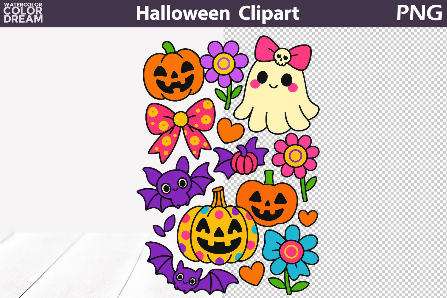 Kawaii Halloween Clipart PNG – Colorful Hot DTF Transfer Print Design