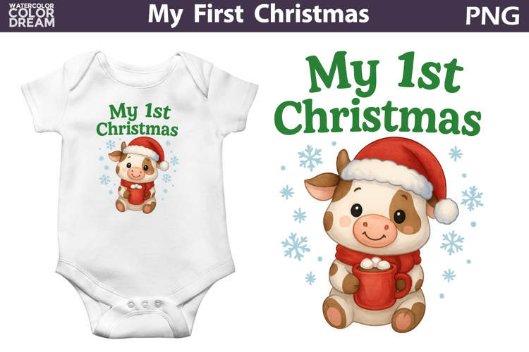 My First Christmas My 1st Christmas Kids Christmas Shirt Christmas Sublimation Design Cute Cow Clipart Baby Christmas Sublimation First Christmas Sublimation Baby Christmas Shirts Baby First Christmas Sublimation Cute Cow My First Christmas