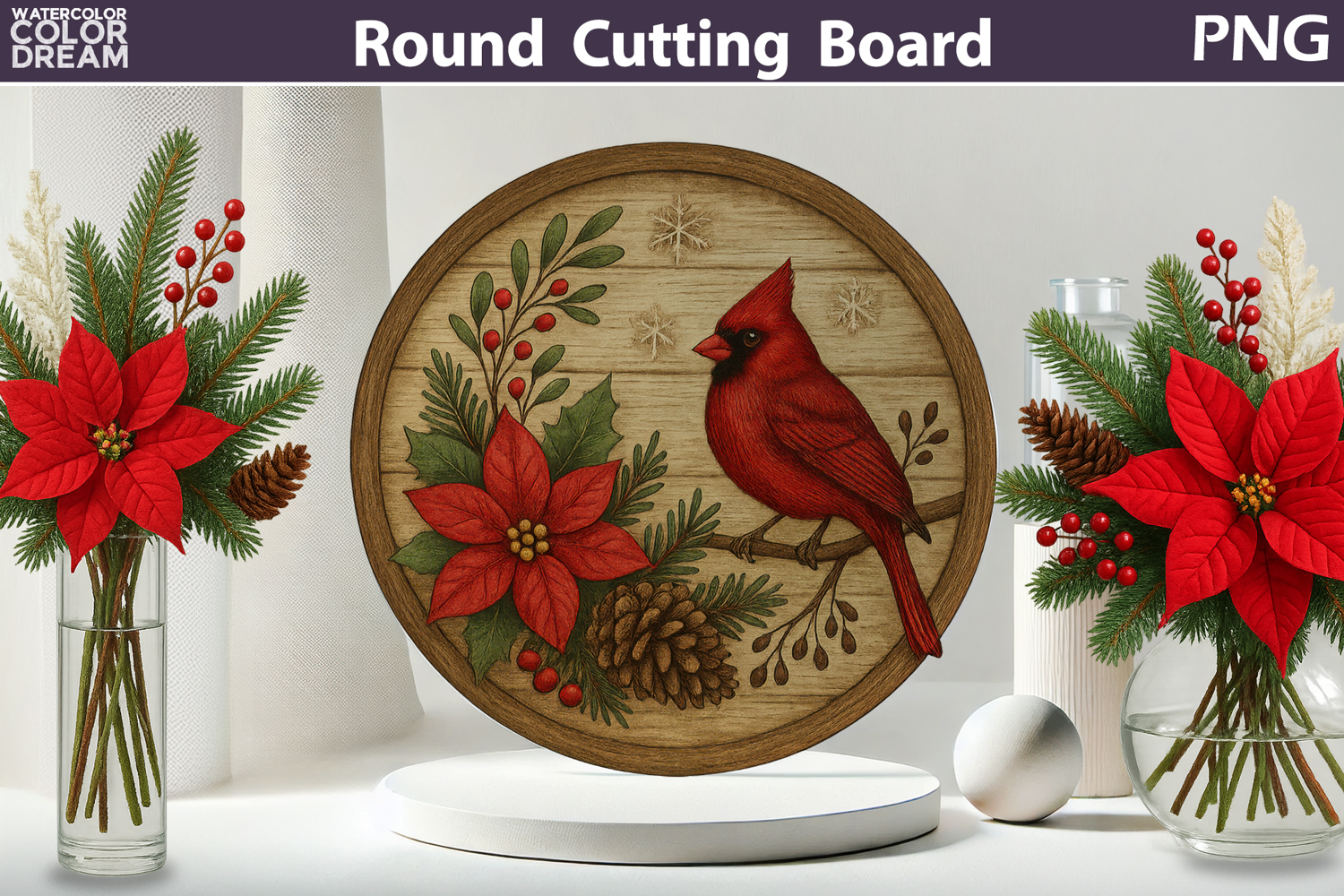 Christmas Cardinal Kitchen | Round Cutting Board Sublimation example image 1