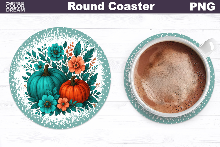 Similar Design Products to Fall Pumpkin Floral Round Coaster | Thanksgiving Car Coaster