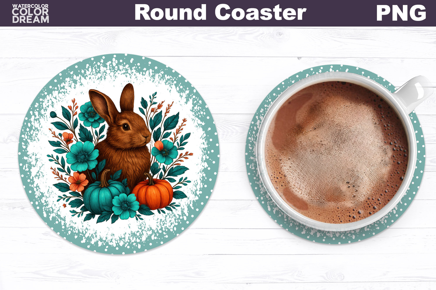 Similar Design Products to Bunny Pumpkin Floral Round Coaster | Farm Animal Car Coaster