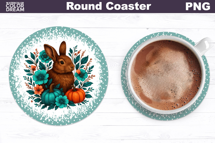 Bunny Pumpkin Floral Round Coaster | Farm Animal Car Coaster example image 1