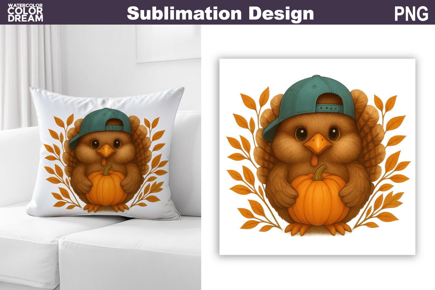 Turkey Sublimation Design | Thanksgiving Pillow example image 1