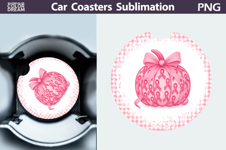 Similar Design Products to Pumpkin Breast Cancer Car Coaster | Pink Ribbon Awareness