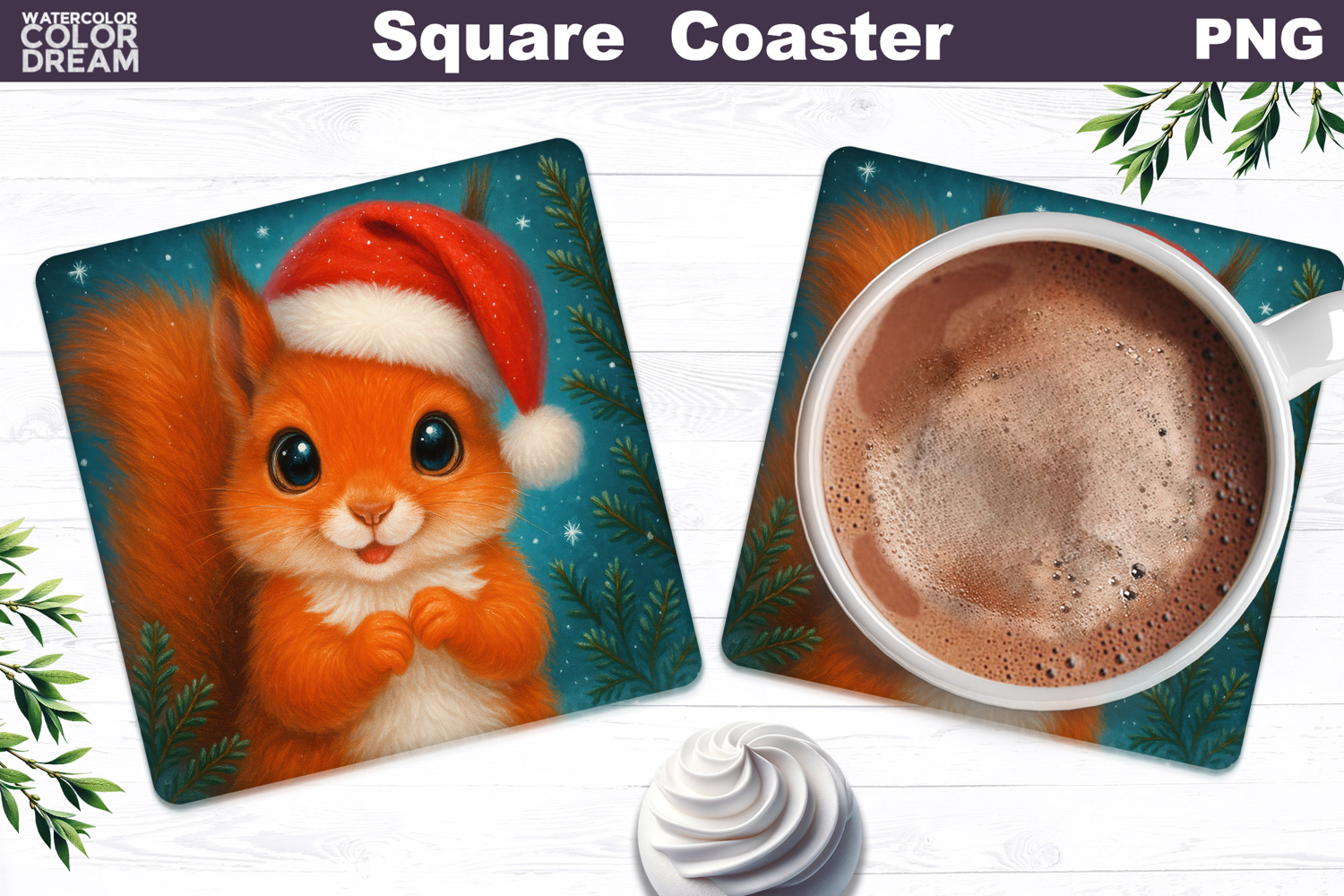 Squirrel Christmas Coaster Square Coaster Christmas Square Coaster Christmas Animal Square Coaster Square Coaster Keychain Magnet Baby Animal Christmas Square Coaster Christmas Animal Santa Hat Square Coaster Squirrel Santa Hat Squirrel Santa Hat Square Coaster