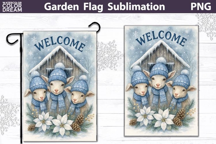Winter Farm Garden Flag | Goat Christmas Sublimation