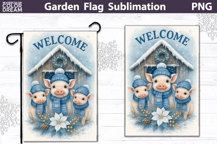 Winter Farm Garden Flag | Pig Christmas Sublimation