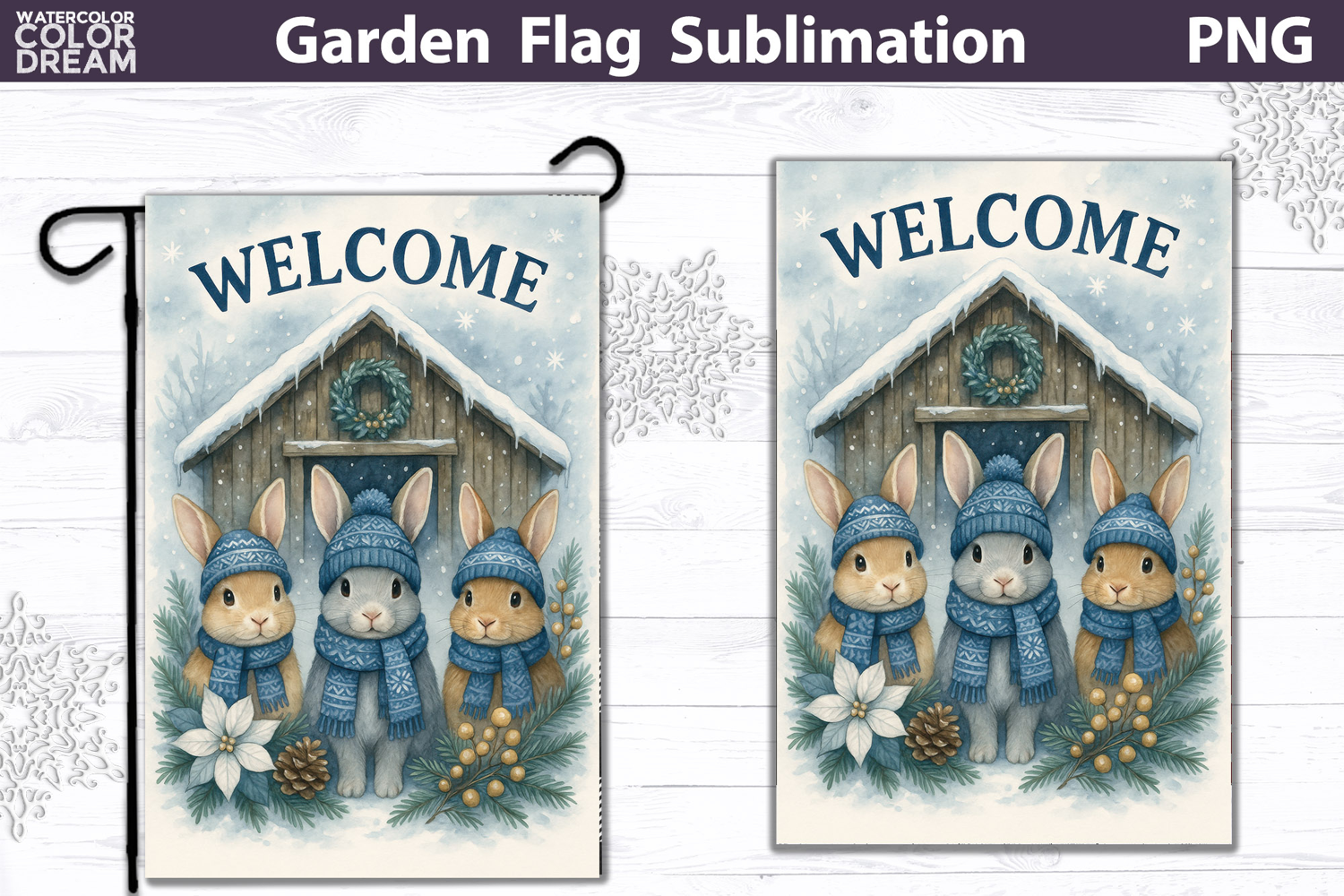 Winter Farm Garden Flag | Bunny Christmas Sublimation example image 1