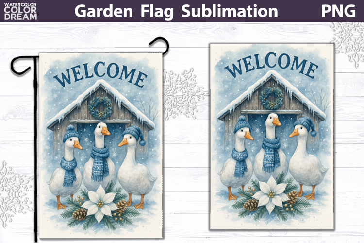 Winter Farm Garden Flag | Goose Christmas Sublimation