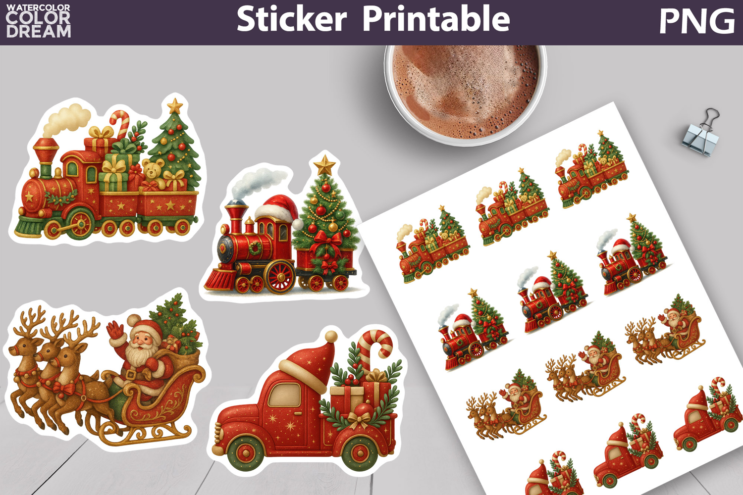 Vintage Christmas Sticker | Red Truck Train Sticker example image 1