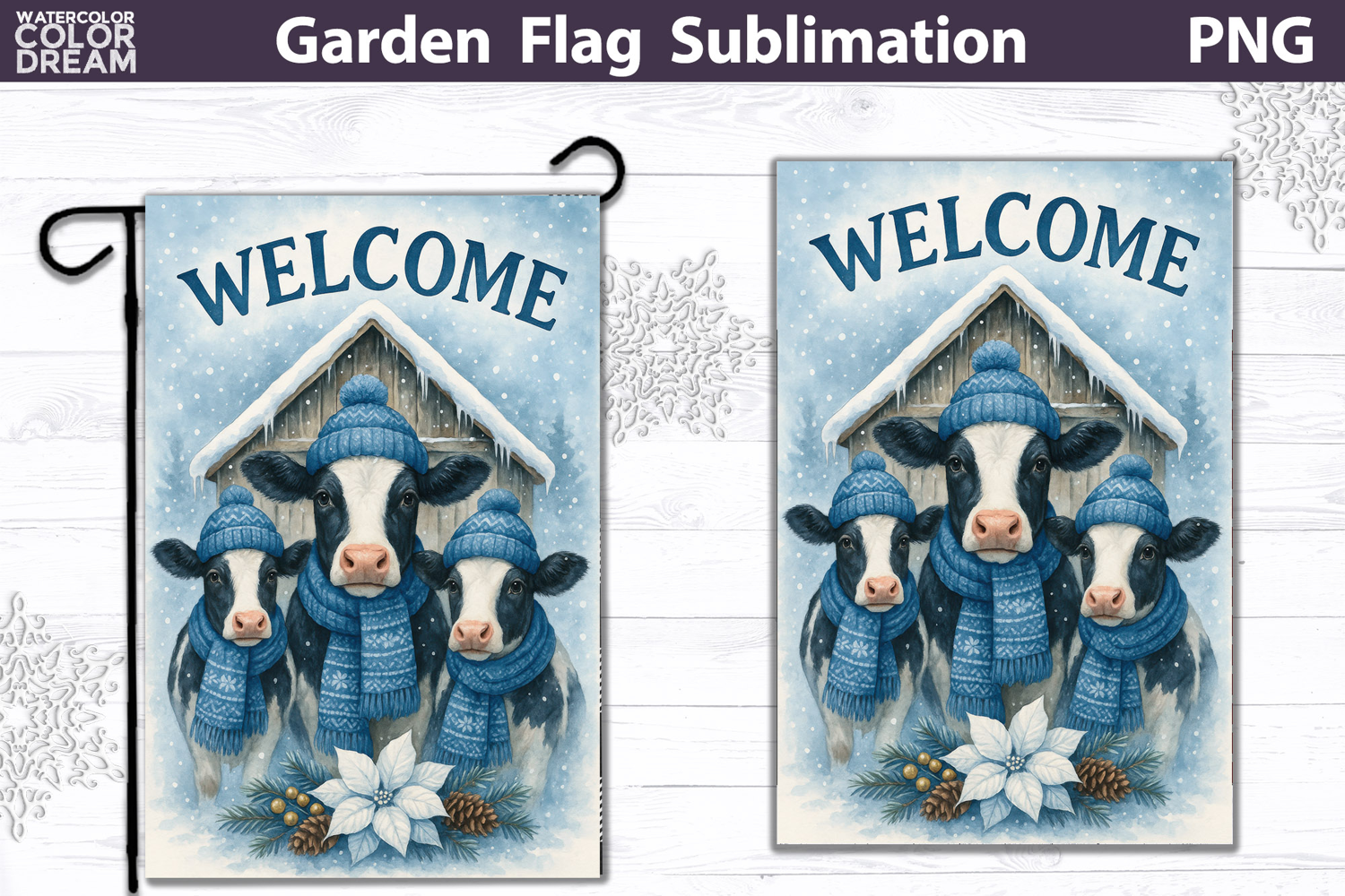 Winter Farm Garden Flag | Cow Christmas Sublimation