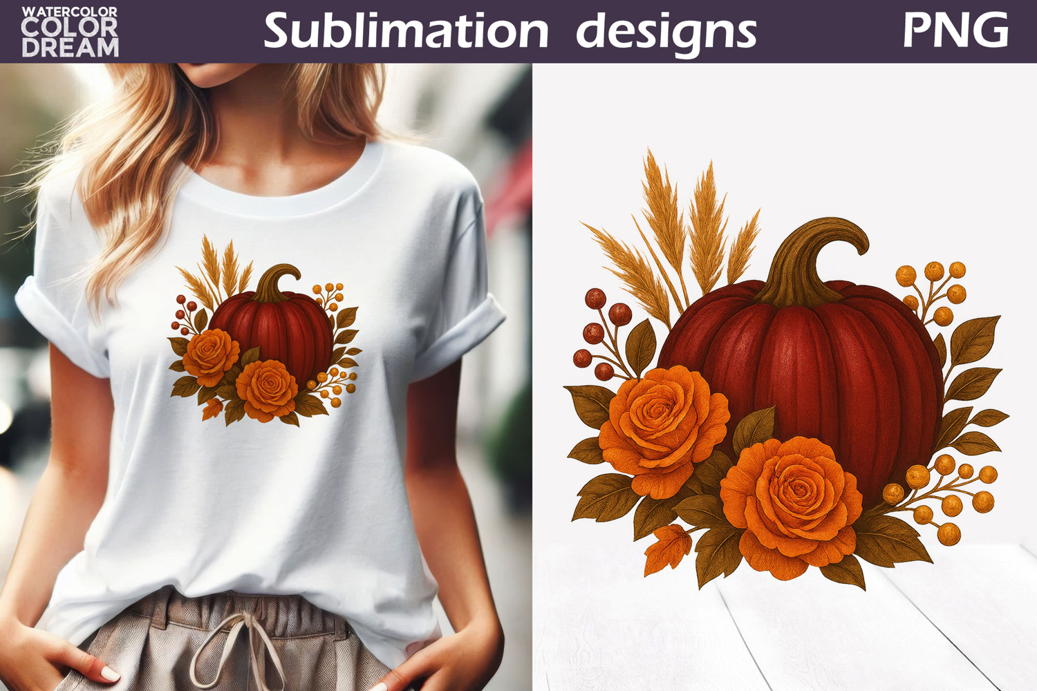 Similar Design Products to Pumpkin Floral Clipart | Thanksgiving Sublimation
