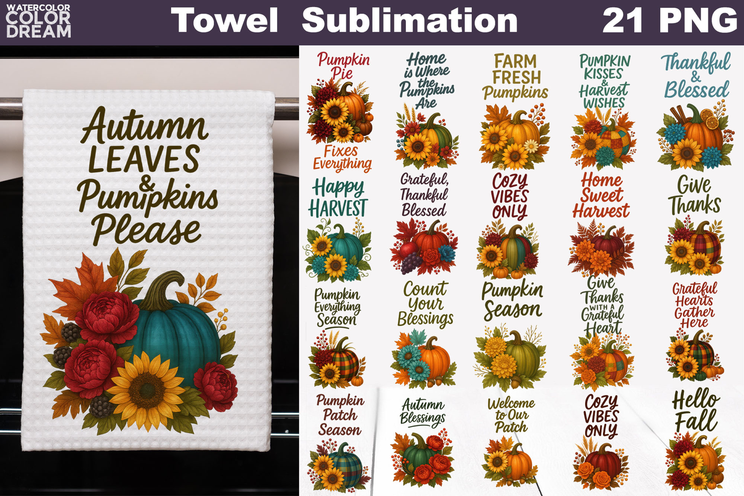 Pumpkin Floral Towel Bundle | Thanksgiving Sublimation
