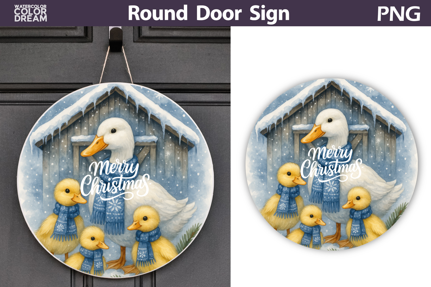Merry Christmas Round Sign | Duck Door Sign example image 1