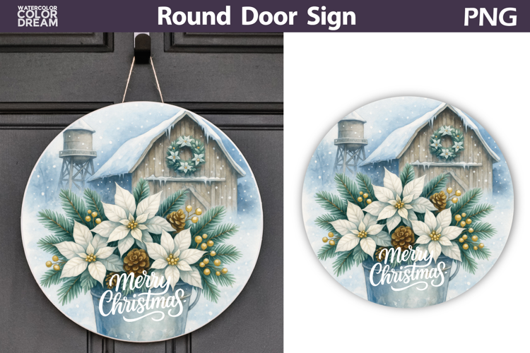 Merry Christmas Round Sign | Farm Door Sign example image 1