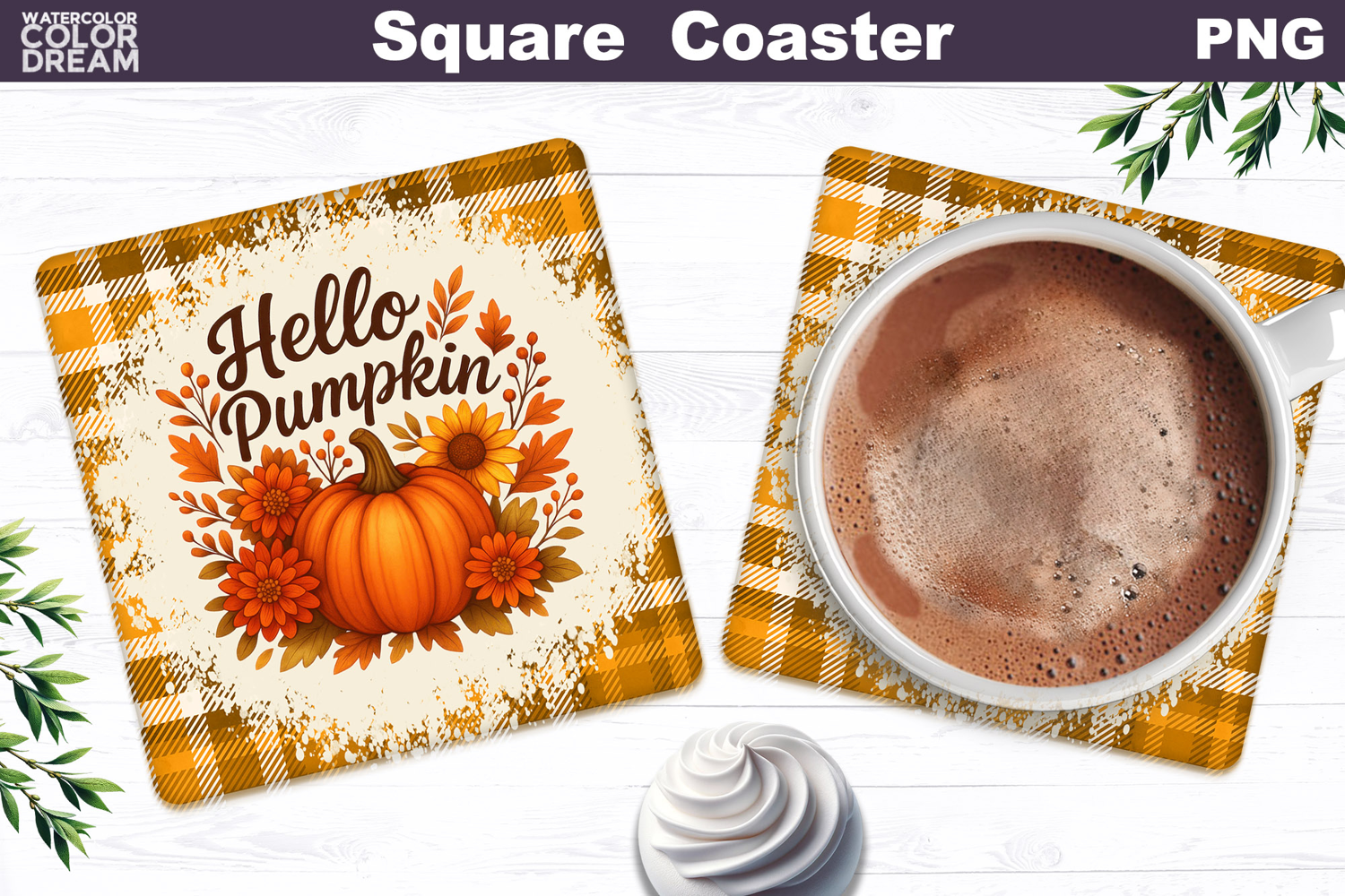 Similar Design Products to Thanksgiving Square Coaster | Hello Pumpkin Sublimation