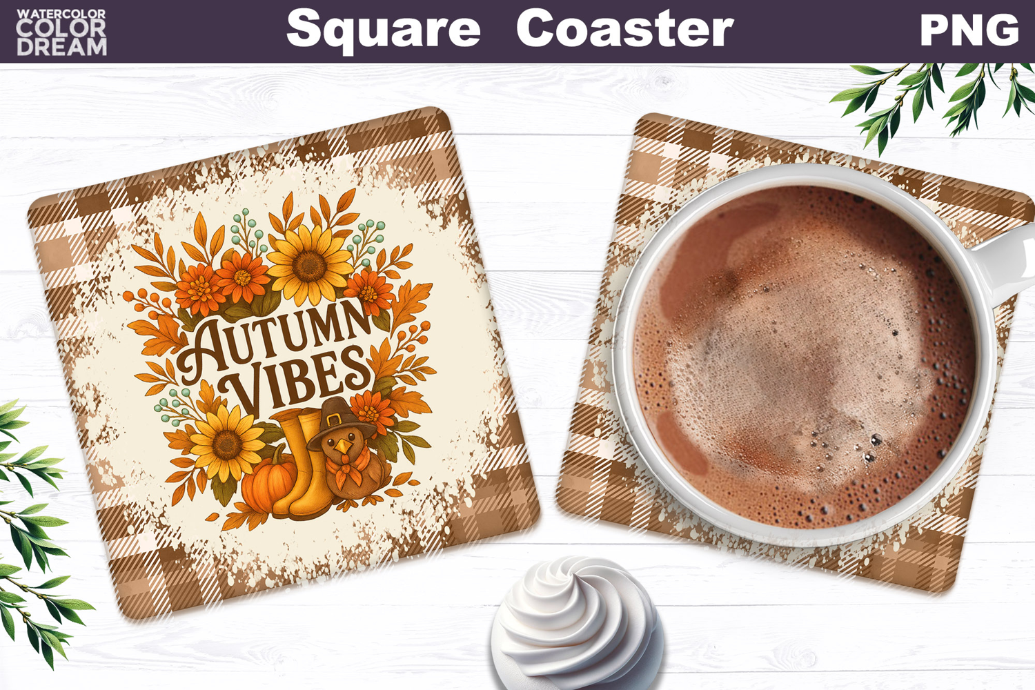 Thanksgiving Square Coaster | Autumn Vibes Sublimation example image 1