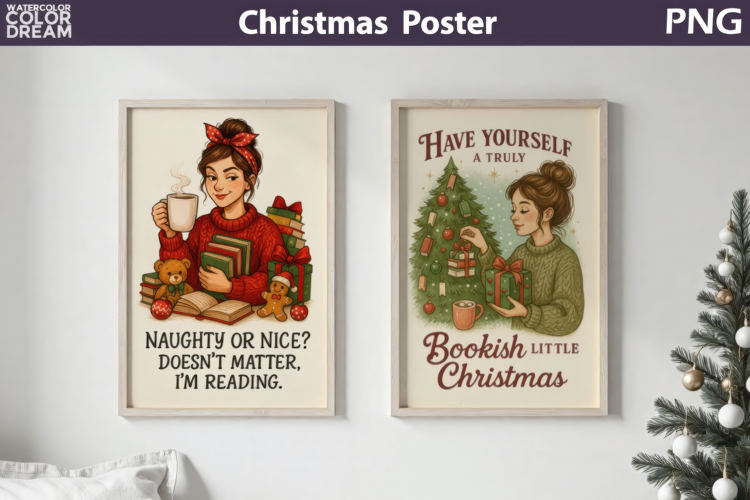 Bookish Christmas Poster | Cozy Reading Sublimation