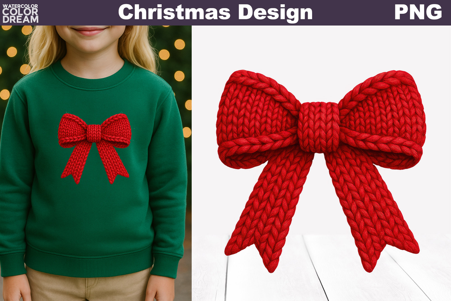 Red Bow Crochet Clipart | Christmas Bow Knitted example image 1