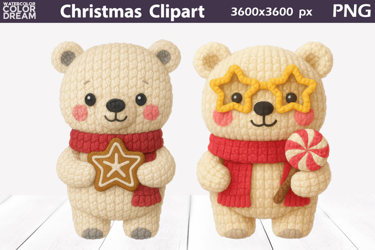 Polar Bear Crochet Clipart | Christmas Cute Animals Knitted example image 1