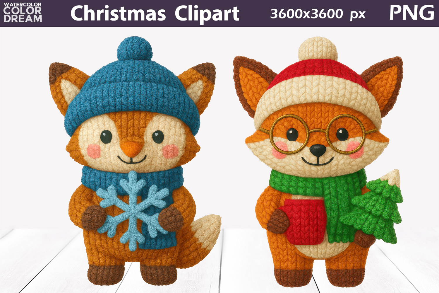 Fox Crochet Clipart | Christmas Cute Animals Knitted example image 1