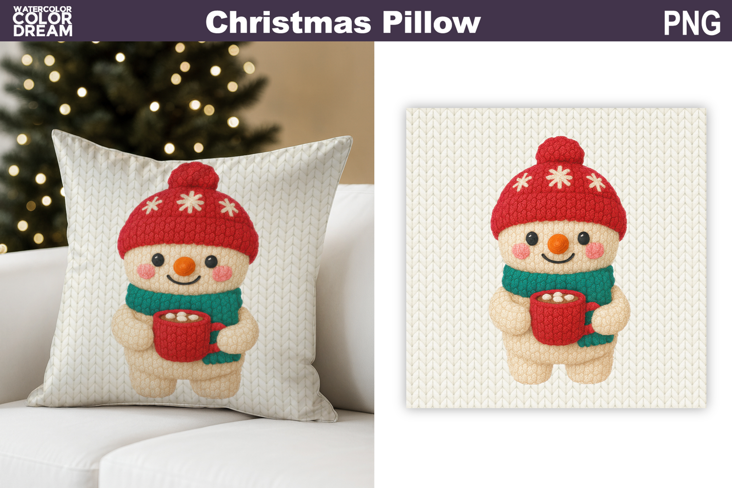 Christmas Snowman Crochet Pillow | Knitted Sublimation example image 1