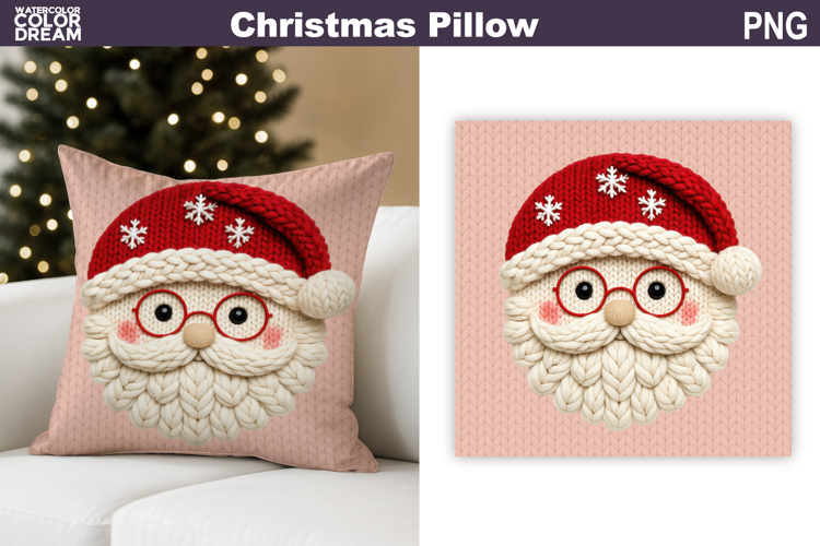 Santa Claus Crochet Pillow | Knitted Sublimation Design