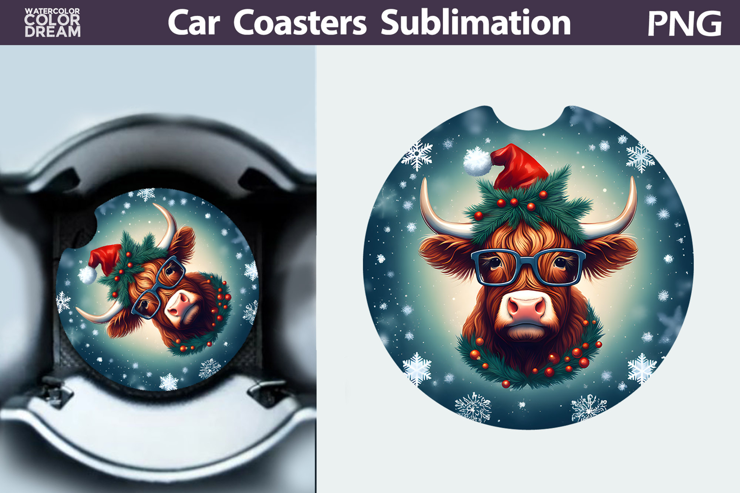 Highland Cow Car Coaster | Christmas Round Coaster example image 1
