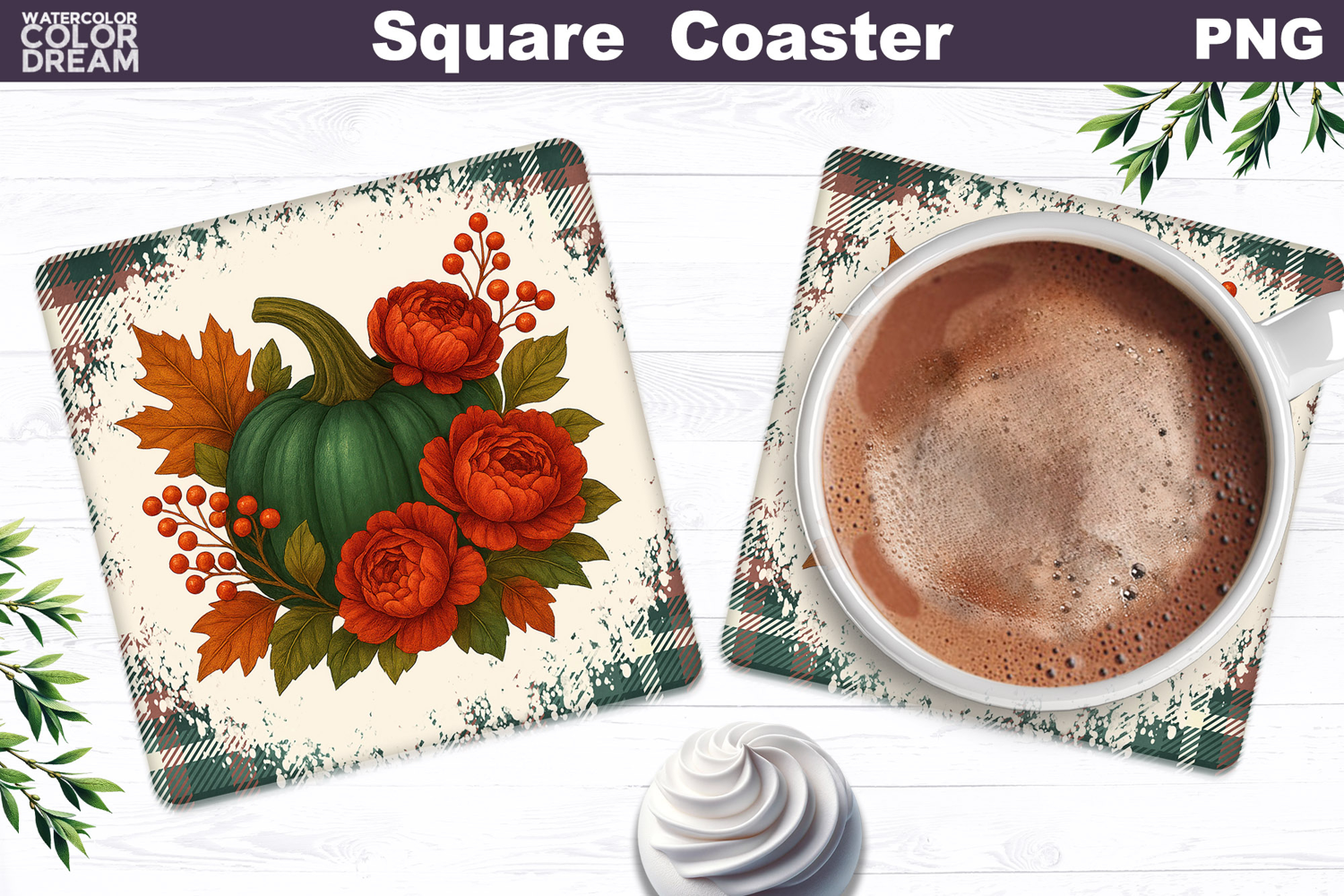 Similar Design Products to Fall Pumpkin Floral Square Coaster| Thanksgiving Sublimation
