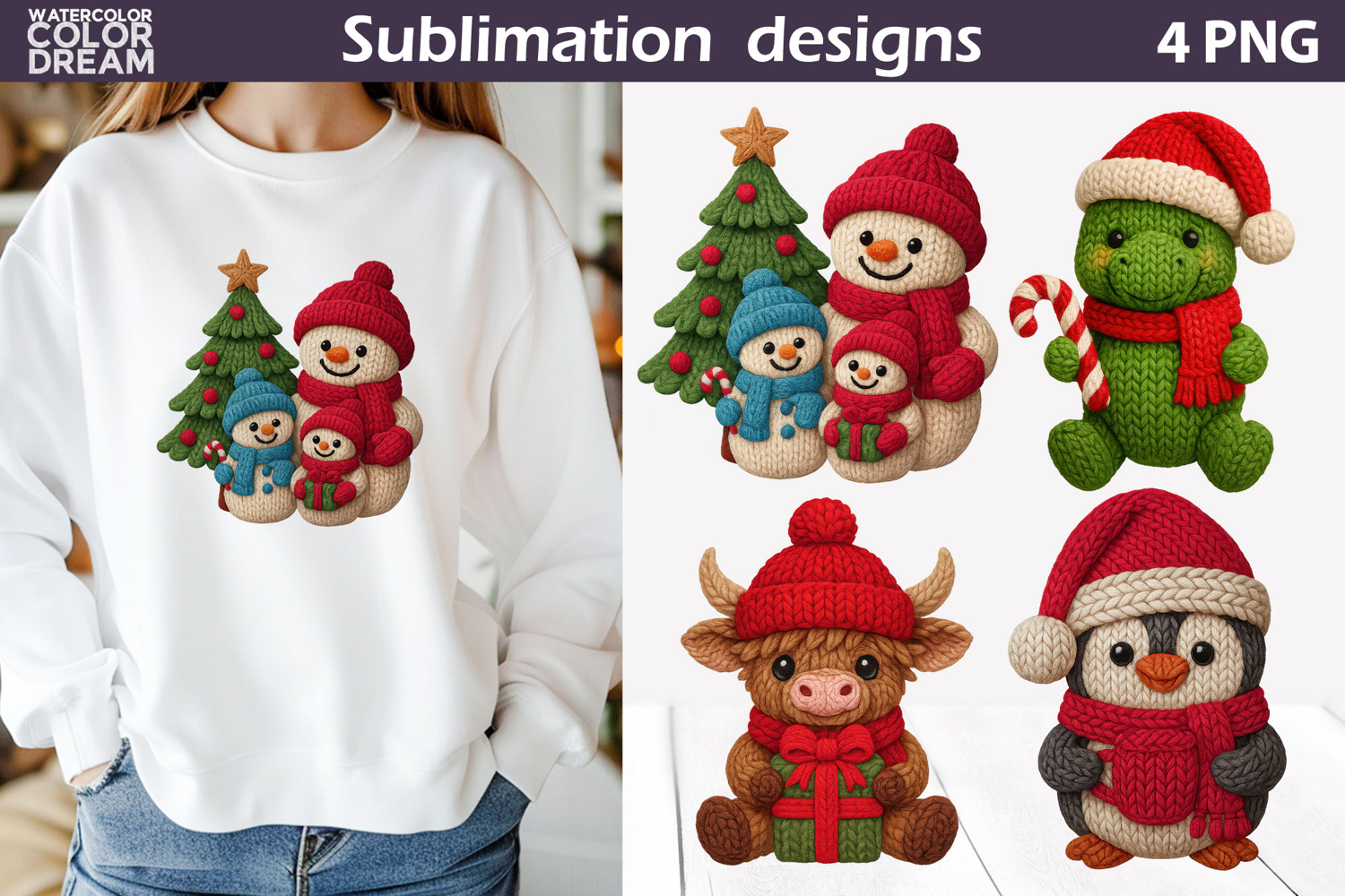Christmas Crochet Clipart | Christmas Knitted Sublimation