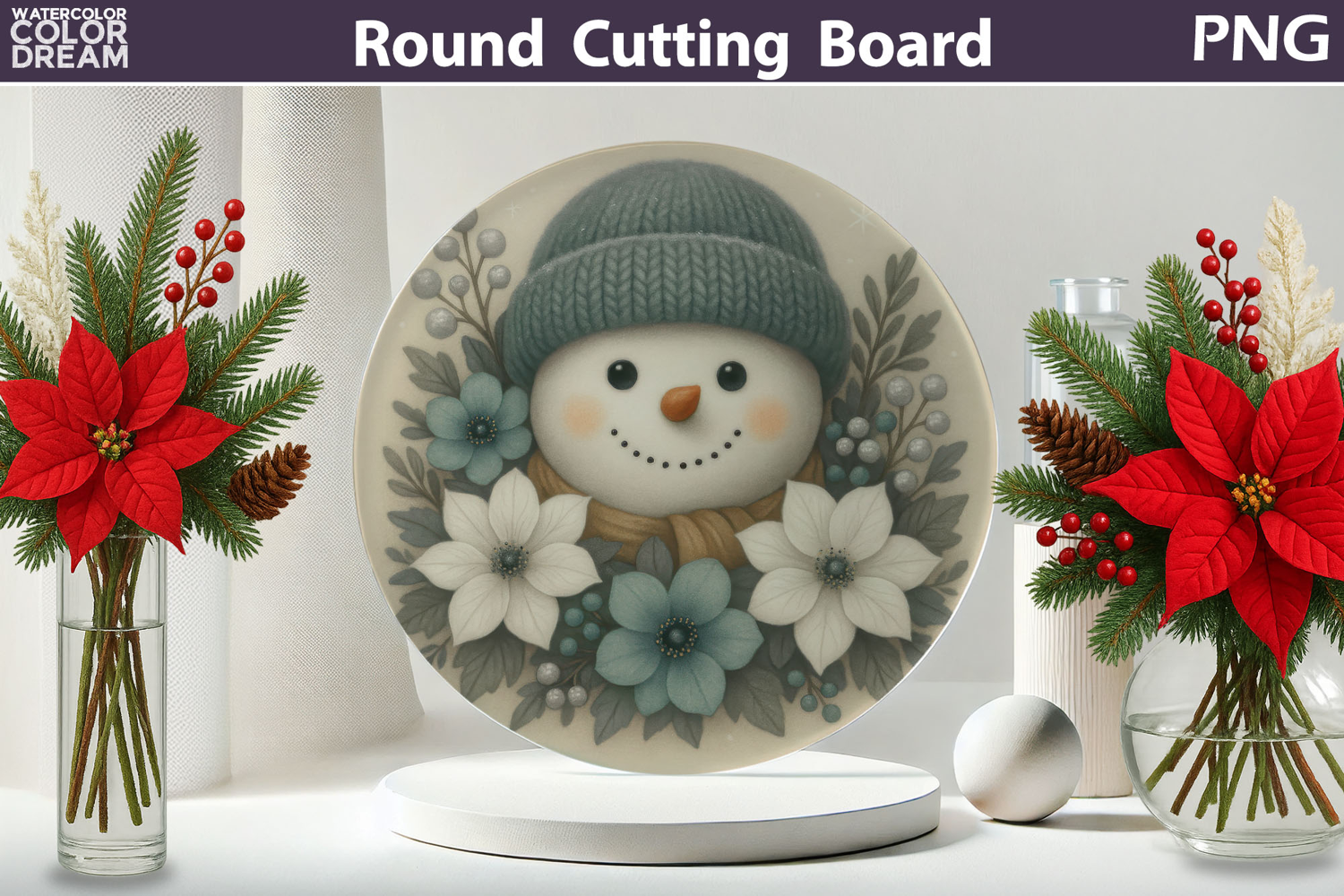 Snowman Floral Kitchen | Christmas Round Cutting Board example image 1