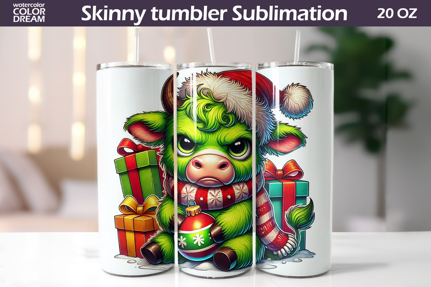 Christmas Green Animal Tumbler | Grumpy Cow Tumbler example image 1