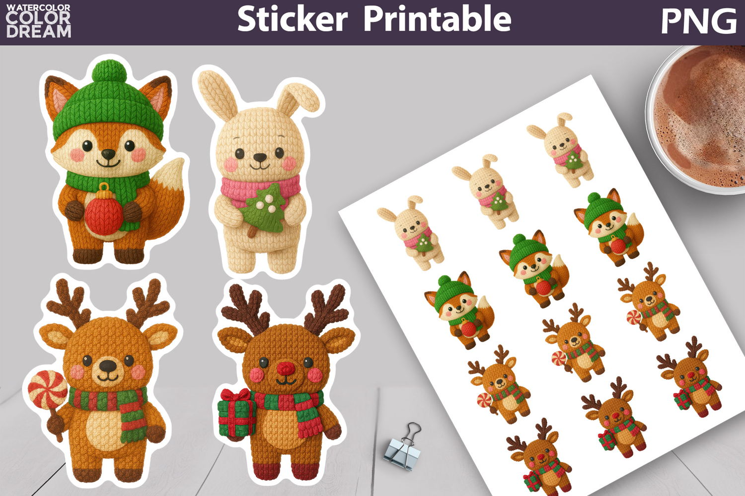 Animal Christmas Sticker | Christmas Knitted Sticker