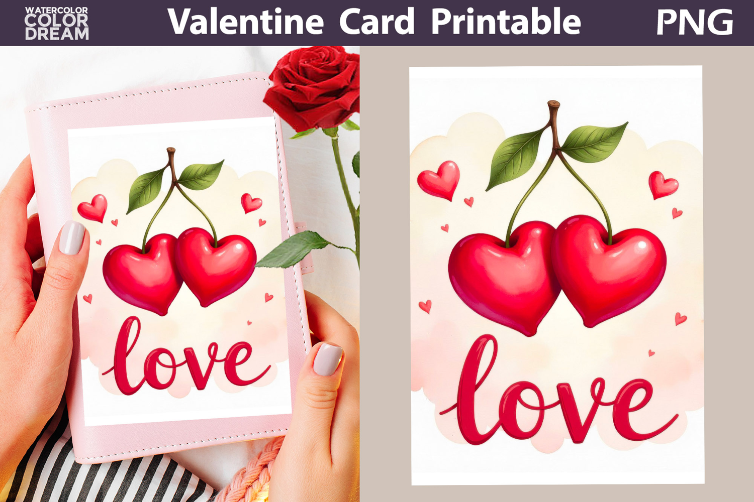 Cherry Heart Valentine Card | Happy Valentines Day example image 1