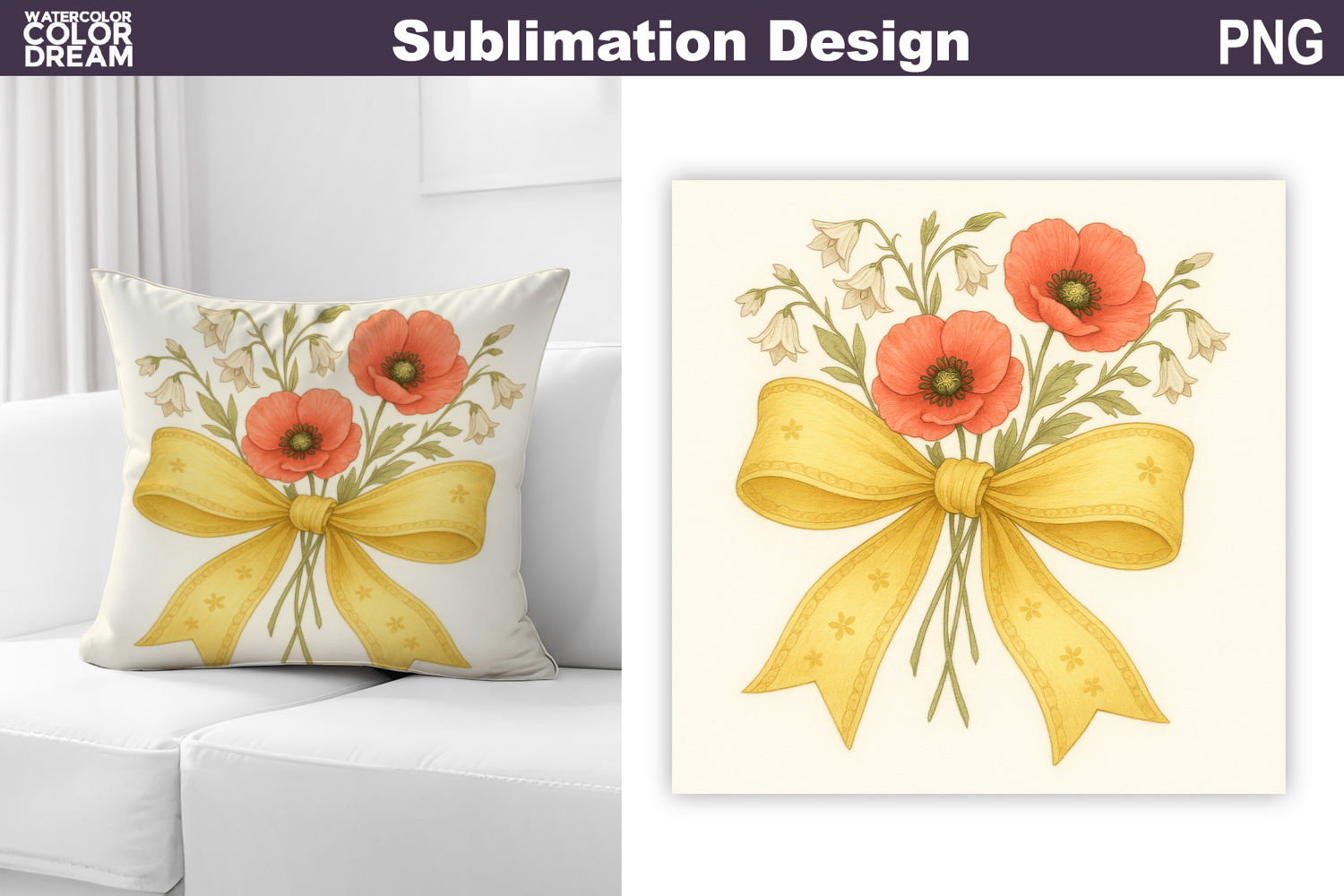 Wildflowers Bow Sublimation | Poppy Pillow Design example image 1