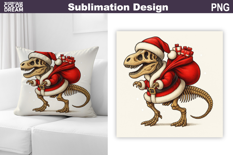 Dino Santa Claus Sublimation | Christmas Dinosaur Pillow example image 1