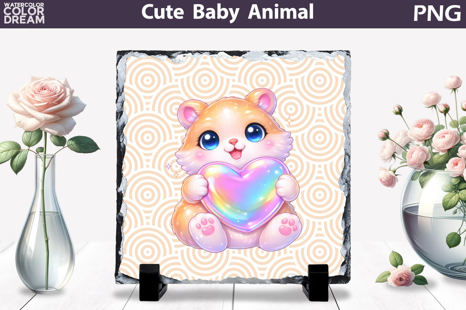 Cute Animal Sublimation Slate | Baby Valentine Heart example image 1
